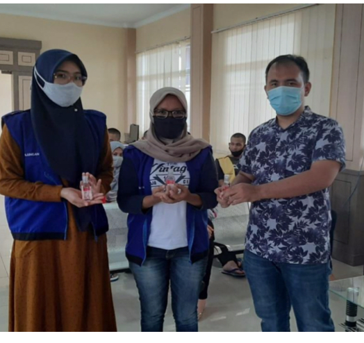 Tidak hanya belajar daring, Rutan Serang juga Melakukan pembagian handsanitizer kepada siswa PKBM Bina Pengayoman.
