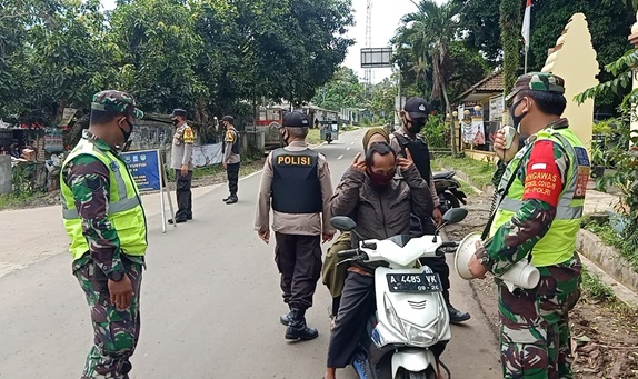 KABUPATEN SERANG – Koramil 2306/Mancak Kodim 0623/Cilegon melakukan kegiatan Himbauan dan Sosialisasi Pencegahan Covid 19 dengan war war dan pembagian masker di objek objek vital di kecamatan Mancak Kabupaten Serang Provinsi Banten, Selasa (09/02/2021). “ Dikutip Bungasbanten.id- Group siberindo.co