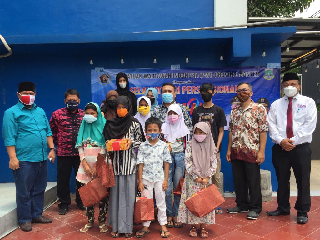 SIBERINDO.CO – Dalam rangka memperingati Hari Pers Nasional 2021 ke-75, Persatuan Wartawan Indonesia (PWI) Provinsi Banten menggelar bakti sosial santunan kepada yatim piatu dari Kampung Kaloran Pena, kota Serang. Selasa (09/02).