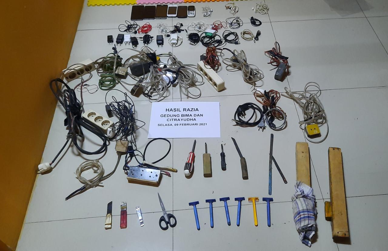 Demikian petugas menemukan barang-barang yang tidak diperbolehkan berada di dalam blok hunian Lapas Cilegon. Tidak hanya itu, petugas juga menemukan beberapa senjata tajam berupa pisau buatan, cutter, dll. Dari hari sidak malam ini, petugas menyita beberapa barang milik warga binaan, antara lain alat charge telp genggam, alat cukur, dan obeng. (*/cr3).