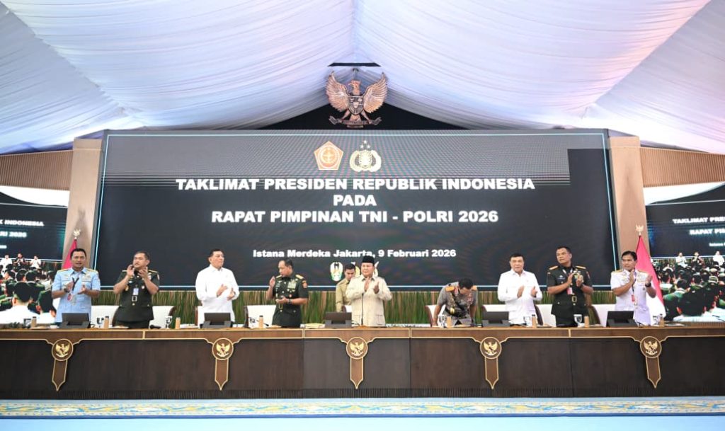 Jakarta – Menteri Pertahanan RI, Sjafrie Sjamsoeddin, menghadiri Rapat Pimpinan (Rapim) TNI dan Polri tahun 2026 yang dipimpin langsung oleh Presiden Prabowo Subianto di Istana Kepresidenan Jakarta, Senin (9/2/2026). Forum strategis ini menjadi momentum konsolidasi tahunan untuk memperkokoh profesionalisme serta peran TNI-Polri sebagai garda terdepan pertahanan dan keamanan negara.