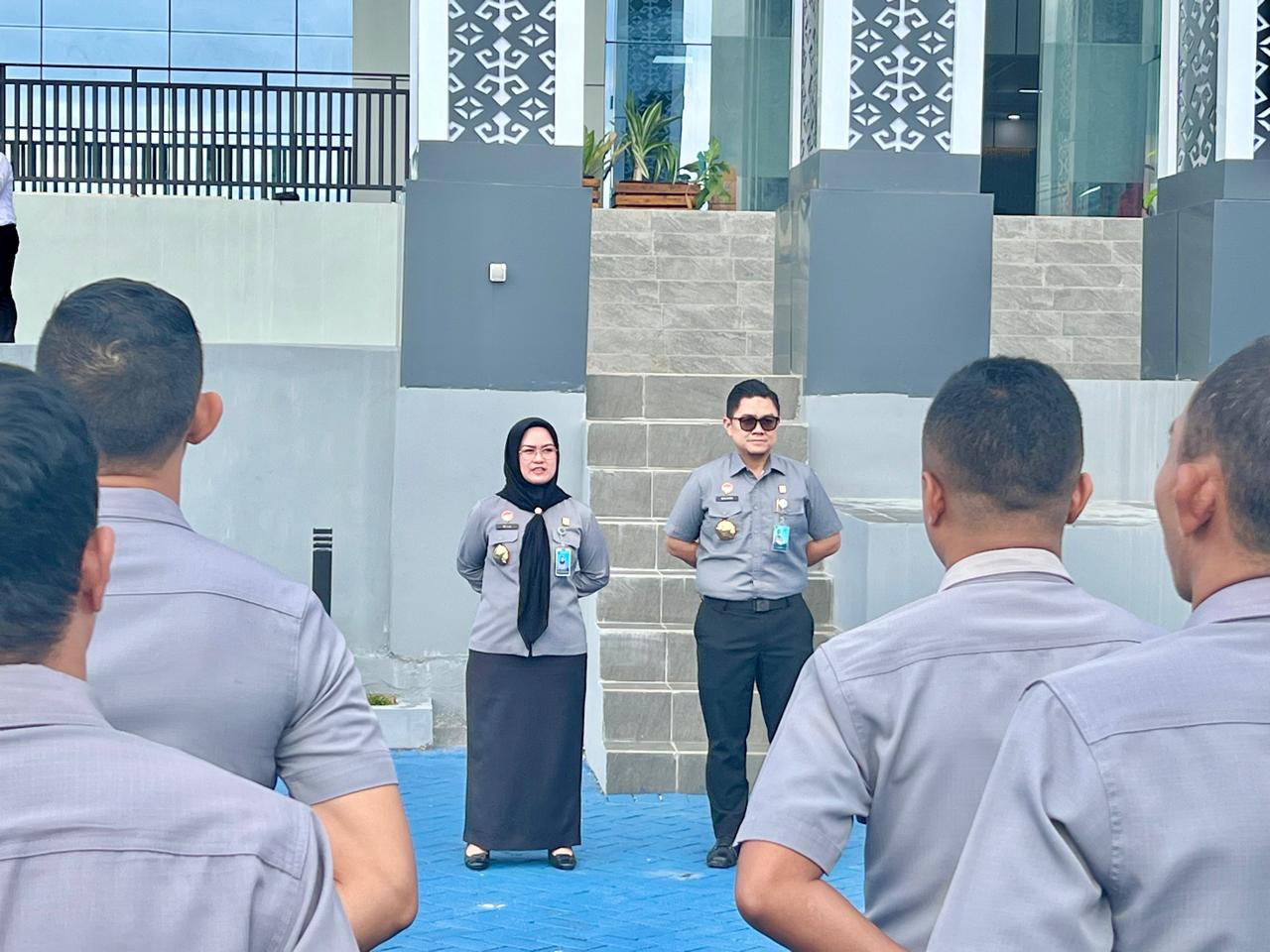Ternate – Kantor Wilayah (Kanwil) Kementerian Hukum (Kemenkum) Maluku Utara (Malut) menggelar apel pagi perdana di halaman gedung baru yang beralamat di Kelurahan Kayu Merah, Ternate, Senin (9/3).