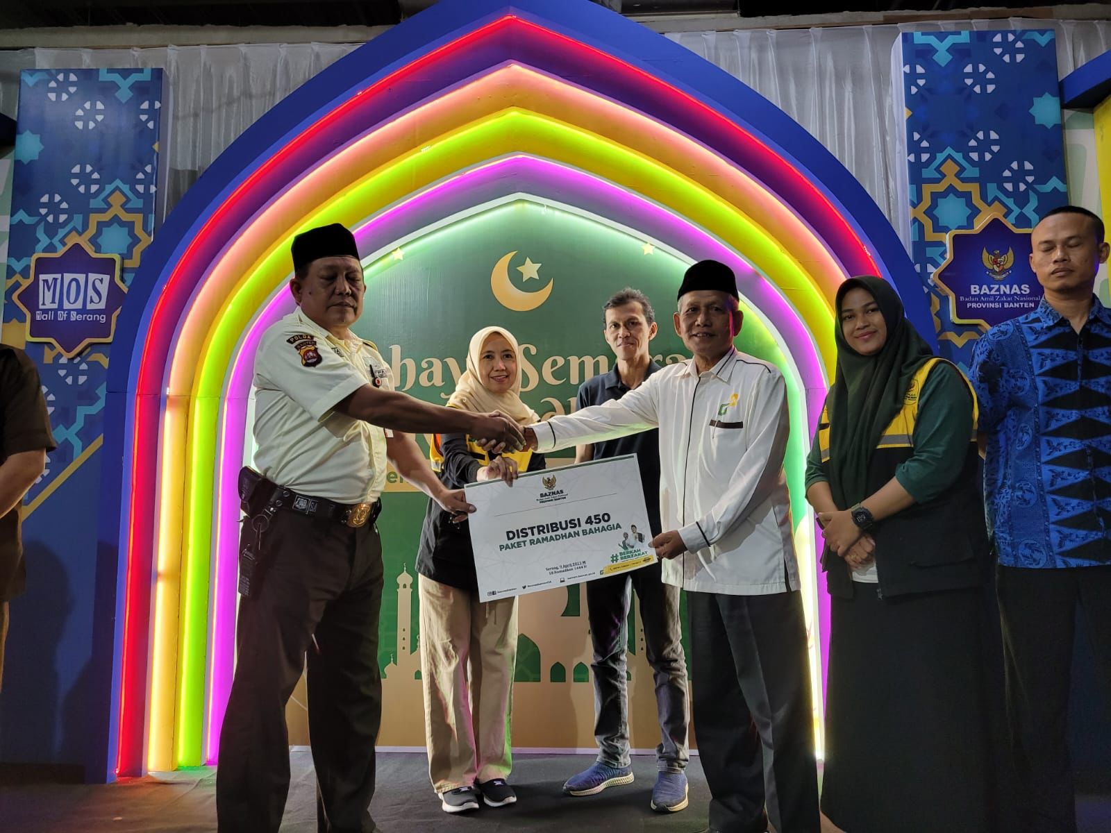 SERANG – Badan Amil Zakat Nasional (Baznas) Provinsi Banten bagikan 450 Paket Ramadhan Bahagia (PRB) untuk mustahik pekerja rentan dalam acara Cahaya Semarak Ramadhan di Mall of Serang (MOS) yang bertepatan dengan 18 hari puasa (09-04-2023).