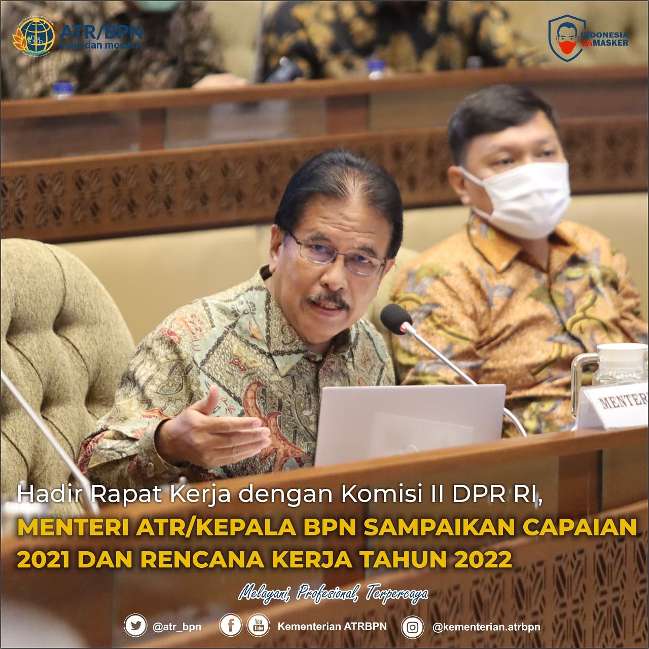 Jakarta – Kementerian Agraria dan Tata Ruang/Badan Pertanahan Nasional (ATR/BPN) mengikuti Rapat Kerja dengan Komisi II Dewan Perwakilan Rakyat Republik Indonesia (DPR RI) di Ruang Rapat Komisi II, Gedung Nusantara, Senayan, Jakarta, Senin (07/06/2021).