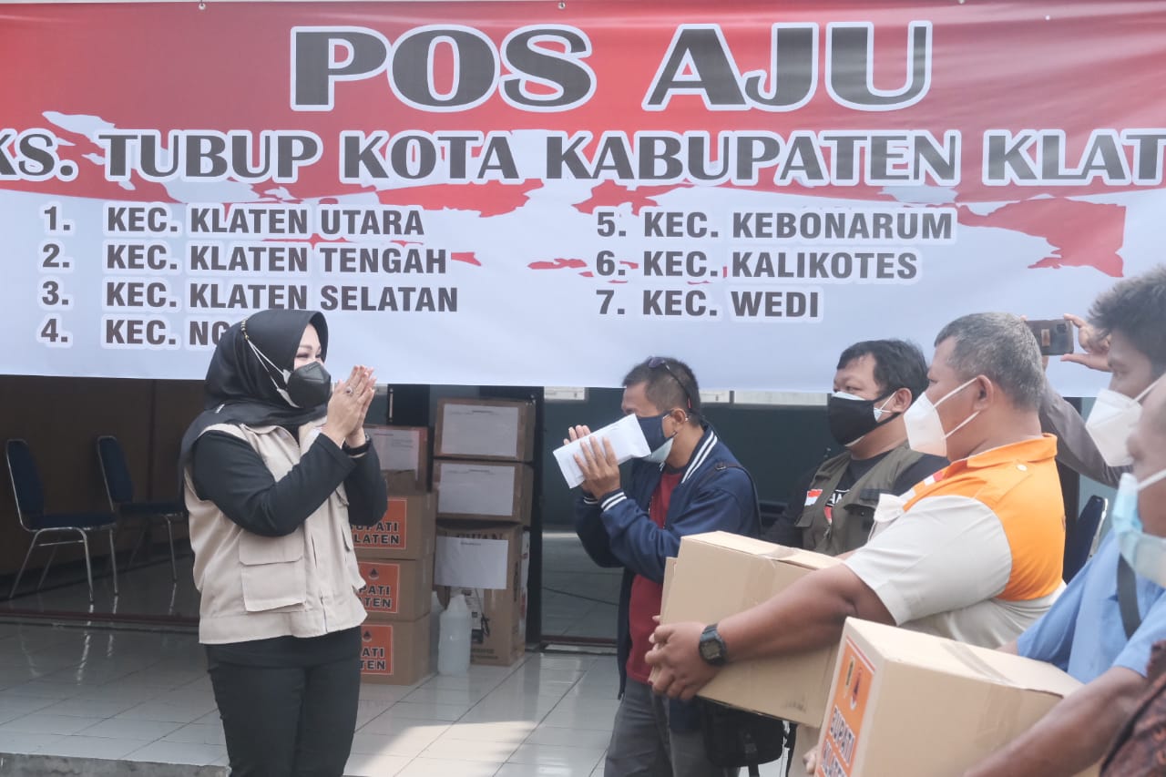Dalam kegiatan tersebut, bupati menyerahkan bantuan operasional berupa alat pelindung diri (APD) serta kelengkapan lain yang digunakan relawan selama bertugas, suplemen tambahan, dan dana operasional Pos Aju sebesar Rp 10 juta. Terdapat lima Pos Aju Pemulasaraan Jenazah, yaitu Pos Aju Klaten Tengah, Pedan, Delanggu, Karanganom, dan Prambanan.