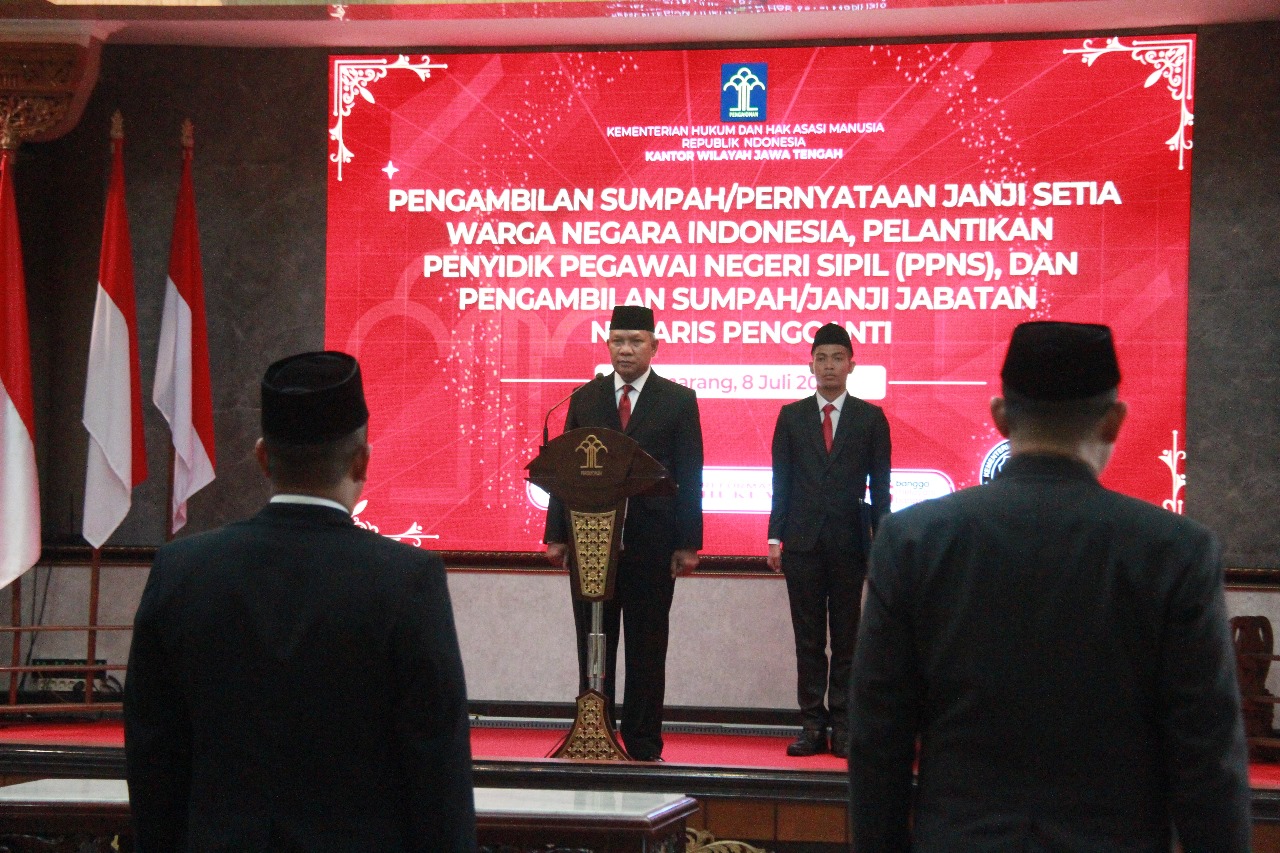 SIBERINDI.CO – Kepala Kantor Wilayah Kementerian Hukum dan HAM Jawa Tengah, Tejo Harwanto memimpin Pengambilan Sumpah/Pernyataan Janji Setia Warga Negara Indonesia (WNI), Senin (08/07).