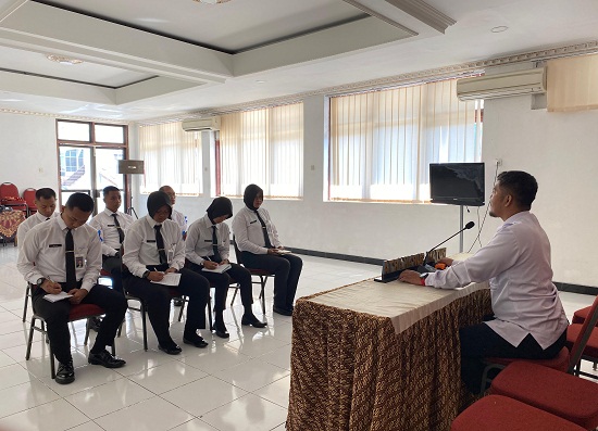 Kegiatan ini diikuti oleh tujuh CPNS yang saat ini tengah menjalani masa orientasi. Materi diberikan langsung oleh staf Kesatuan Pengamanan Rutan (KPR) Surakarta, yang menjelaskan secara komprehensif mengenai konsep dasar pengamanan, tugas pokok dan fungsi petugas, serta prosedur pengamanan yang harus dipedomani.