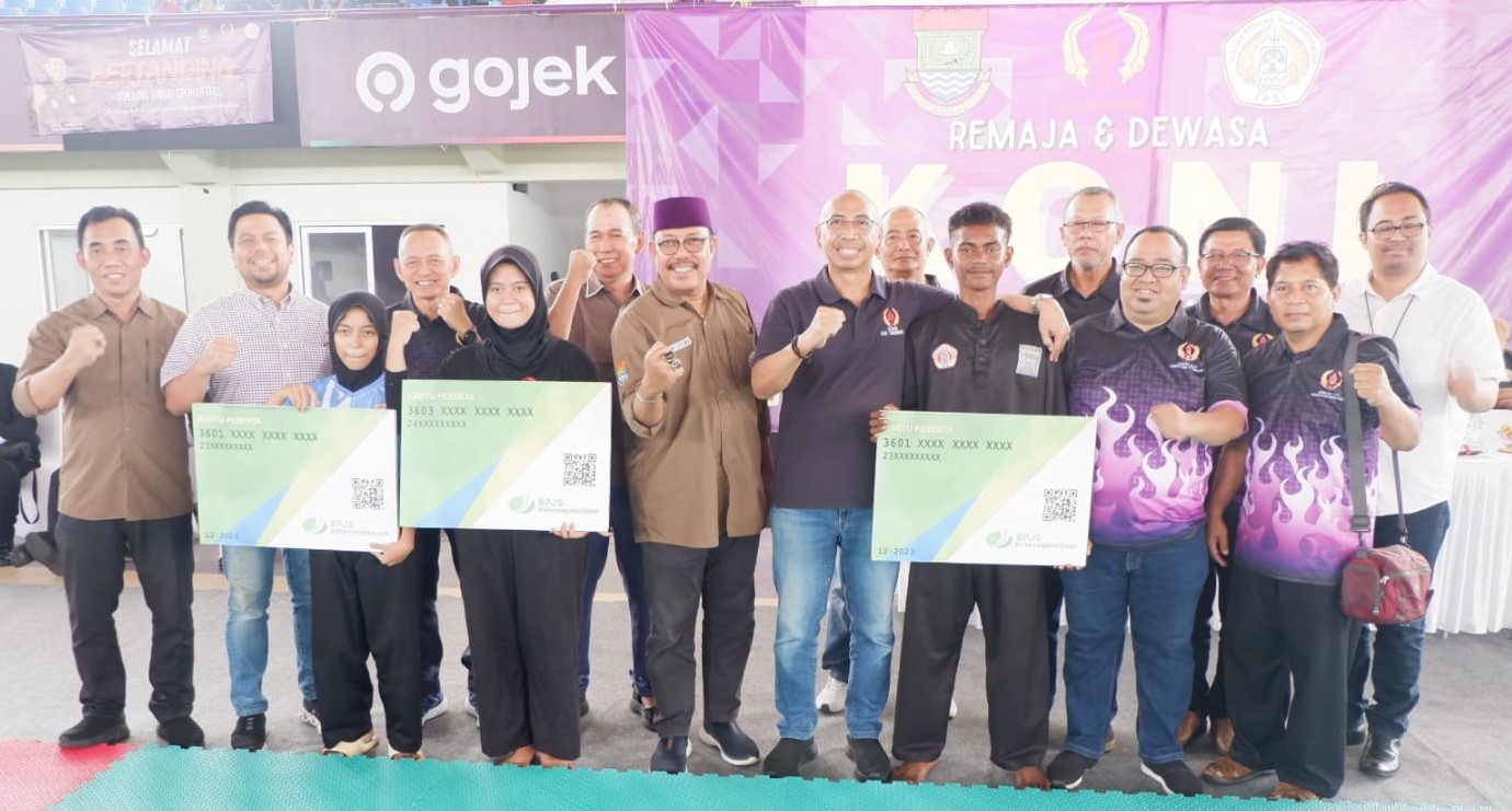 Hal tersebut ditandai dengan penyerahan secara simbolis kartu BPJS ketenagakerjaan oleh Ketua KONI Kabupaten Tangerang H Eka Wibayu kepada atlet pencak silat.