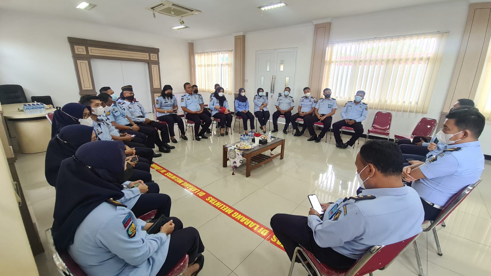 SERANG – Rutan Kelas IIB Serang Melaksanakan kegiatan Rapat Kerja terkait Tupoksi masing-masing bagian. Kegiatan ini dilaksanakan di Aula Rutan Serang yang dipimpin langsung oleh Kepala Rutan Serang Aliandra Harahap serta diikuti oleh Subseksi Pelayanan Tahanan, Keamanan, dan Pengelolaan. Selasa (09/11/2021).