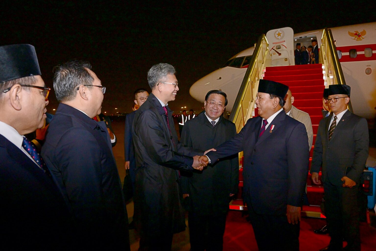 Presiden Prabowo Subianto tiba di Beijing Capital International Airport, Beijing, Republik Rakyat Tiongkok (RRT), Jumat (08/11/2024), sekira pukul 18.30 waktu setempat. Setelah pesawat berhenti sempurna, Presiden Prabowo menuruni tangga pesawat kemudian disambut oleh Menteri Pertanian dan Pedesaan RRT Han Jun serta Duta Besar RRT untuk Indonesia Wang Lutong.