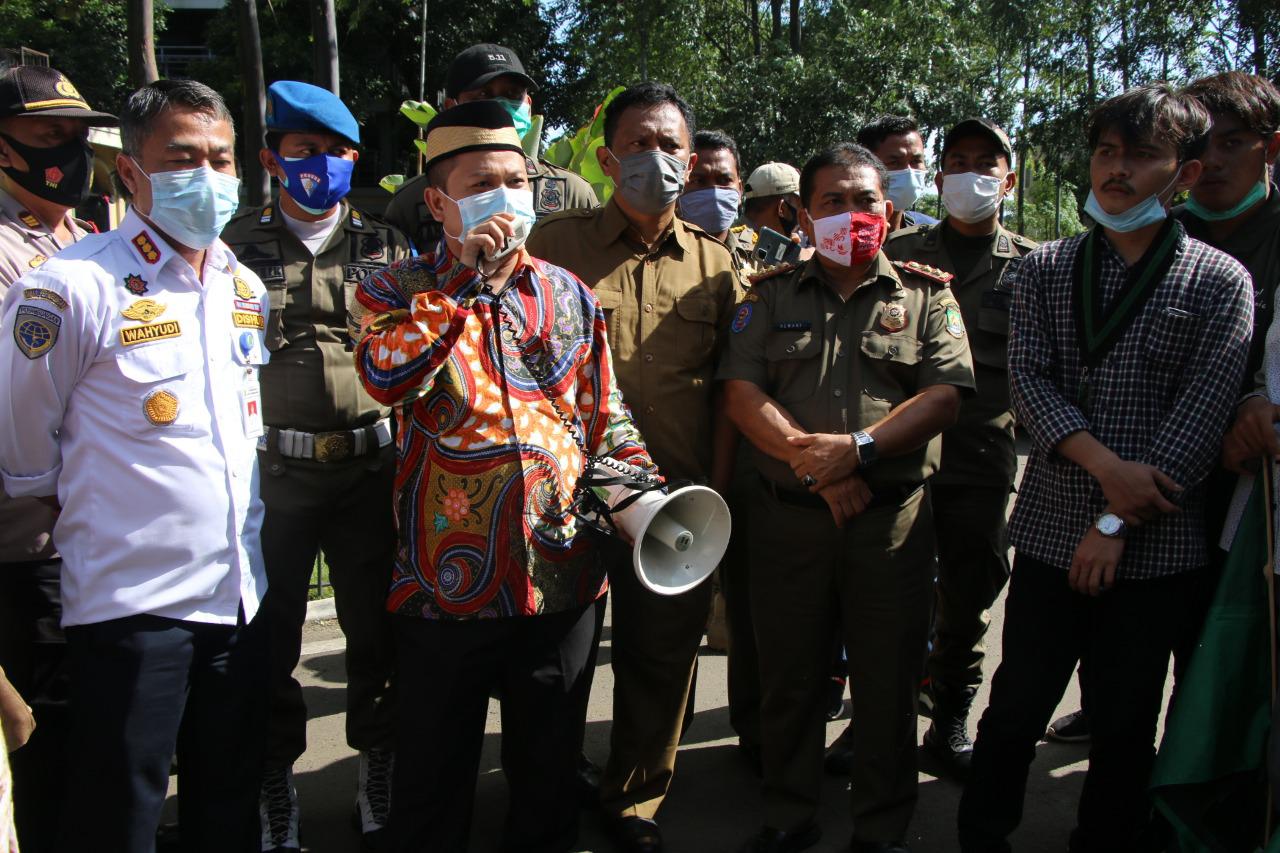 Siberindo.co – Di pintu masuk Pusat Pemerintahan H. Turidi Susanto Wakil Ketua I DPRD dan Kepala Dinas Perhubungan ( Kadishub) Kota Tangerang Wahyudi Iskandar temui Himpunan Mahasiswa Islam ( HMI ) melakukan aksi demo terkait mangkraknya Angkot Si Benteng di Terminal Poris Plawad Kota Tangerang, ( Selasa, 08/12/2020 ).