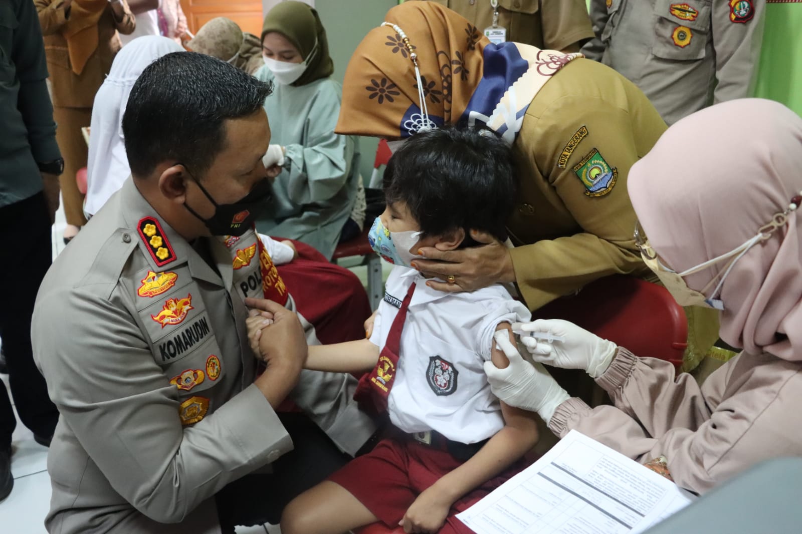 Hari ini Polres metro Tangerang Kota melakukan vaksinasi Anak di 26 titik di Kota Tangerang. Dengan target harian 5000 anak per hari di vaksinasi.