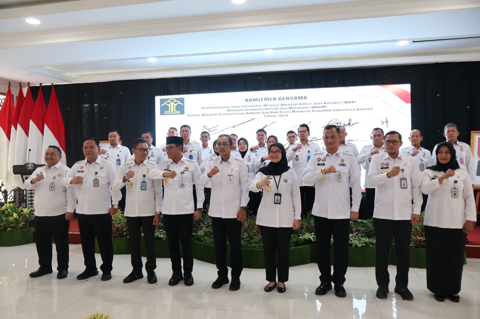 BANTEN – Kepala Lapas Perempuan Kelas IIA Tangerang Kanwil Kemenkumham Banten menandatangani komitmen bersama dalam rangka Mewujudkan Zona Integritas menuju Wilayah Bebas dari Korupsi (WBK) dan Wilayah Bebas Bersih Melayani (WBBM) bertempat di Aula Kantor Kemenkumham Banten diikuti jajaran Pimti Pratama dan Pejabat Administrasi Kemenkumham Banten, dan seluruh Kepala UPT di lingkungan Kanwil Kemenkumham Banten.