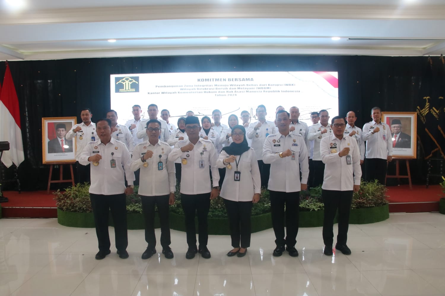 SIBERINDO.CO -Suasana di Kantor Wilayah Kemenkumham Banten terasa begitu berbeda. Para Pimti, Kepala UPT, Pejabat Struktural, pegawai, dan seluruh elemen organisasi dilingkungan Kanwil Kemenkumham Banten berkumpul untuk menandatangani komitmen bersama dalam rangka Mewujudkan Zona Integritas menuju Wilayah Bebas dari Korupsi (WBK) dan Wilayah Bebas Bersih Melayani (WBBM). Rabu(10/01/2023).
