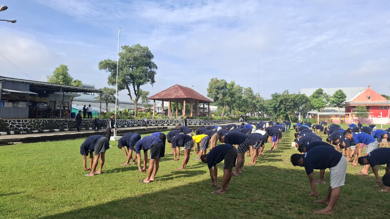 Purwokerto, 10 Januari 2026— Warga binaan blok T5 Lembaga Pemasyarakatan Kelas IIA Purwokerto mengikuti kegiatan senam pagi yang dilaksanakan secara rutin di lapangan sebagai upaya menjaga kebugaran jasmani selama menjalani masa pembinaan.