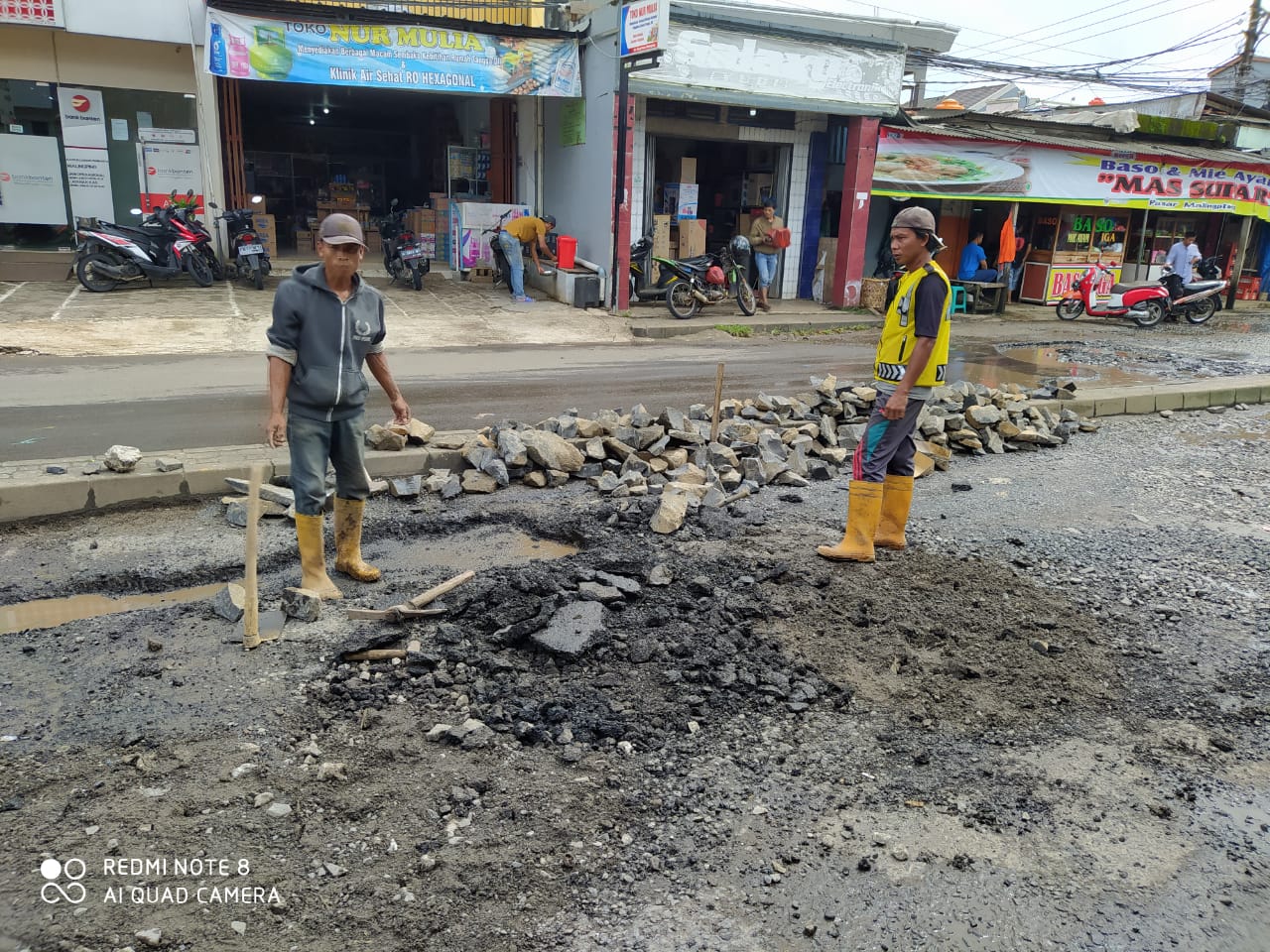 SIBERINDO.CO – Ruas Jalan Malingping – Gunung Kencana Km.01, segera dilakukan penanganan pemeliharaan oleh Dinas Pekerjaan Umum dan Penataan Ruang (DPUPR) Kabupaten Lebak, Rabu (10/02/2021). Pasalnya jalan protokol Malingping tersebut berlubang dan digenangi air yang dianggap membahayakan pengendara.