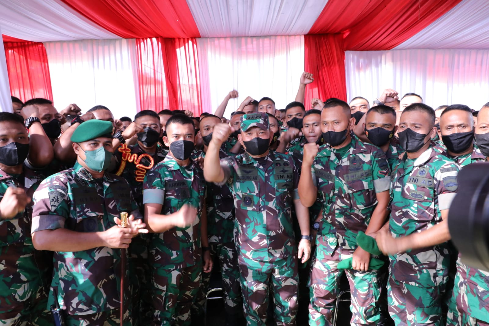 Lebih lanjut Kasad menyampaikan ucapan terima kasih yang tinggi kepada seluruh prajurit yang sudah dapat mewujudkan perintah pimpinan dalam menyelesaikan tugas-tugas perbantuan kepada masyarakat yang mengalami kesulitan dan tentunya merupakan suatu kehormatan dan kemuliaan bagi seorang prajurit. Semoga amal dalam tugas pengabdian ini mendapat pahala dari Tuhan yang Maha Kuasa.