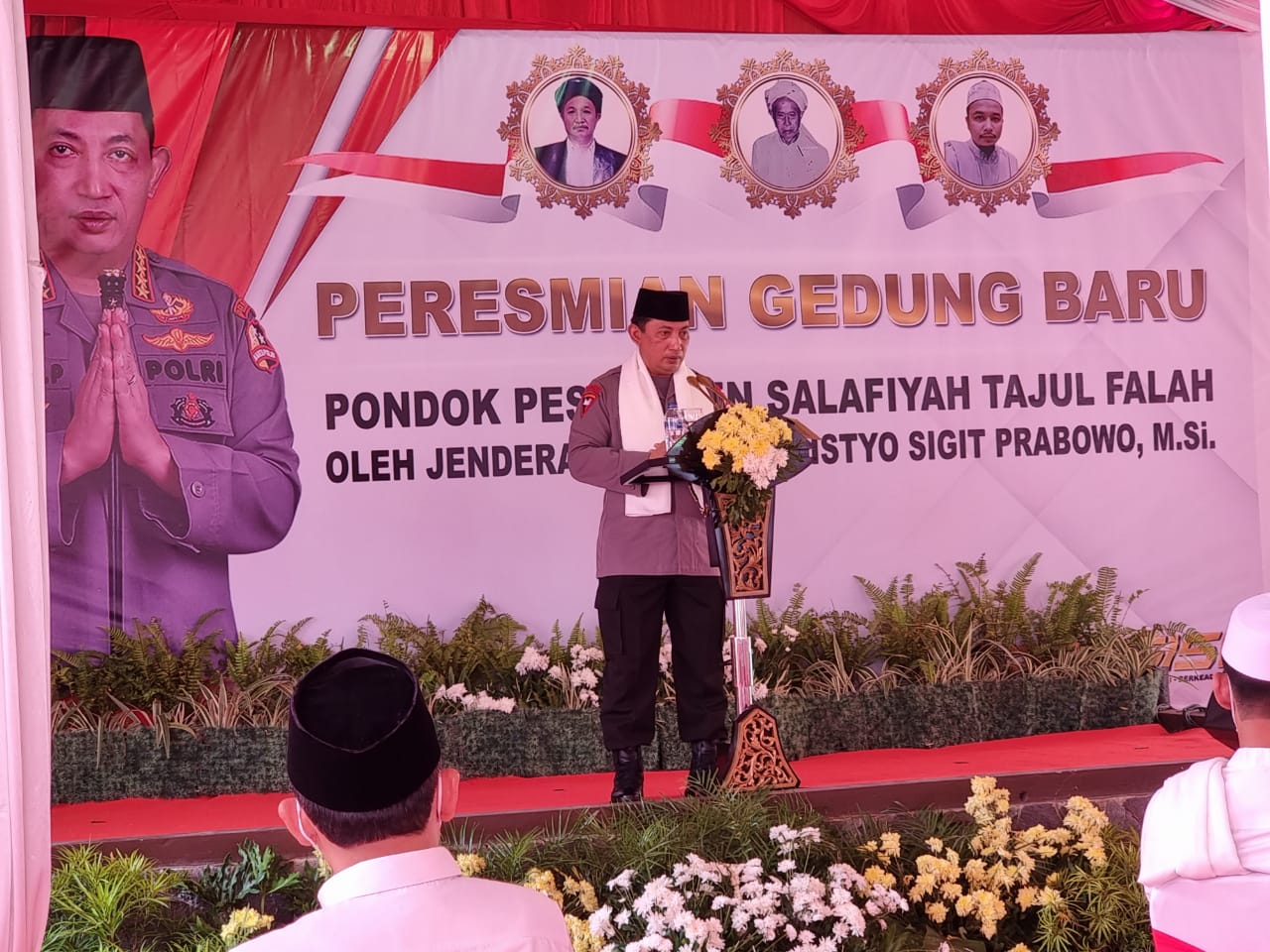Adapun bangunan yang diresmikan Kapolri yaitu sebuah gedung tiga lantai yang akan digunakan untuk keperluan Pondok Pesantren Salafiyah Tajul Falah.