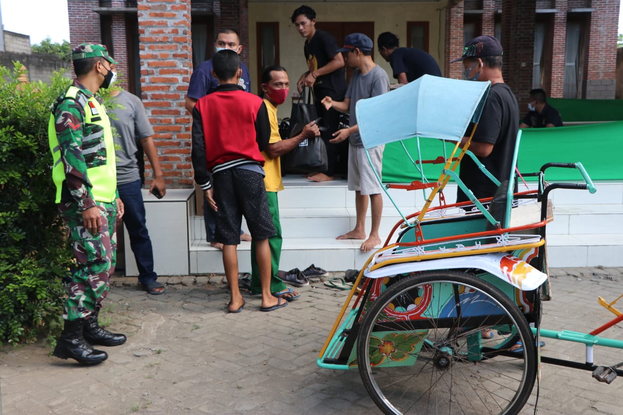 TULUNGAGUNG – Komandan Kodim 0807/Letnan Kolonel Inf Mulyo Junaidi, S.E, M.Tr (Han) memberikan bingkisan lebaran kepada tukang becak, tukang sapu dan juru parkir dalam rangka mewujudkan kepedulian terhadap masyarakat yang membutuhkan dalam bulan yang penuh berkah ini di Pendopo Sajroning Manah, Dusun Bendil Desa Panggungrejo, Kecamatan Tulungagung, Kabupaten Tulungagung. Minggu (09/05/2021).