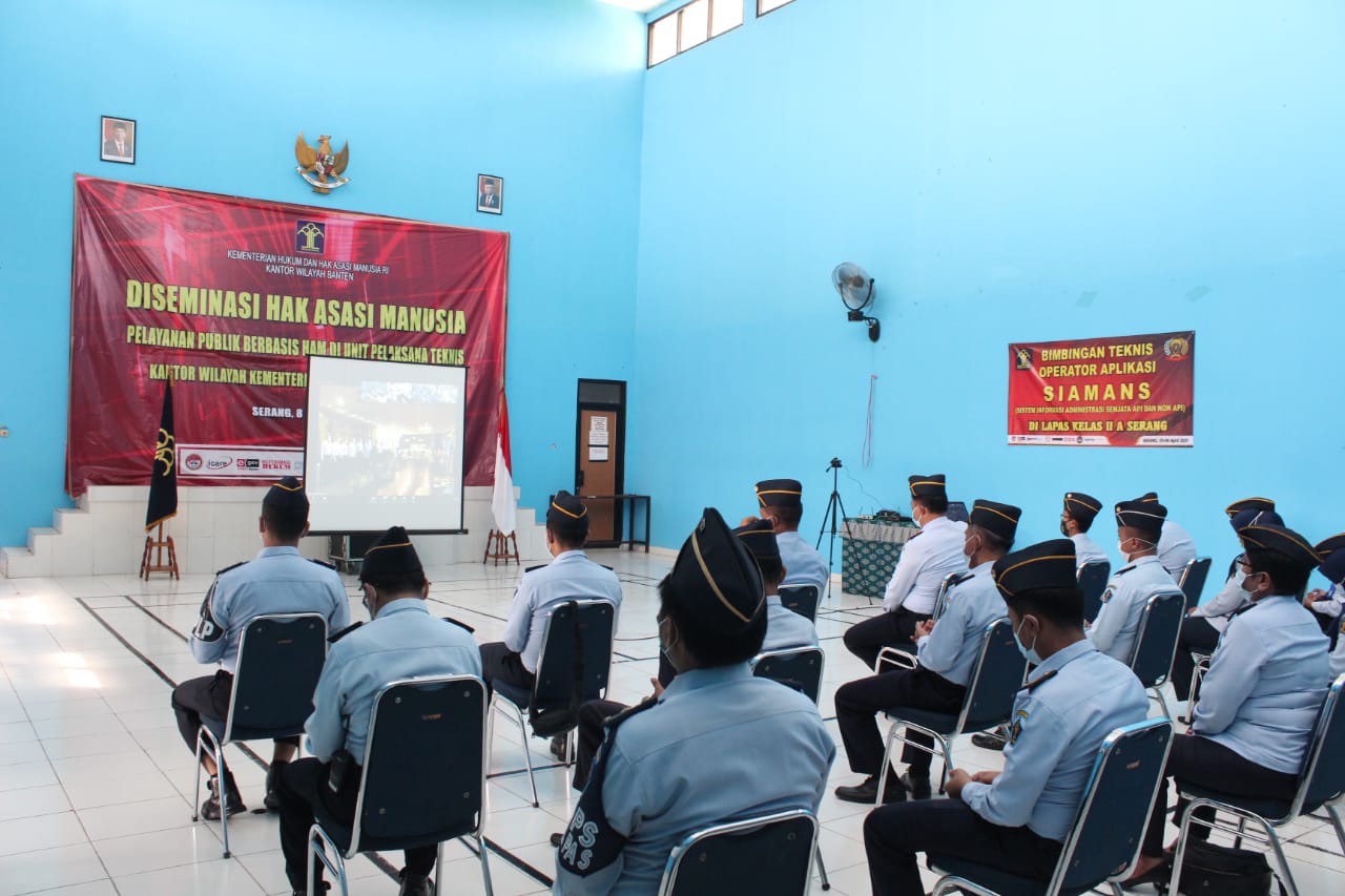 Lembaga Pemasyarakatan melakukan  Apel Pagi Virtual Kementerian Hukum dan Hak Asasi Manusia Republik Indonesia Tahun 2021 di Aula Lapas Kelas IIA Serang, kegiatan tersebut diikuti oleh Kepala Lembaga Pemasyarakatn Kelas IIA Serang, Pejabat Struktural, dan seluruh Staf Administrasi.