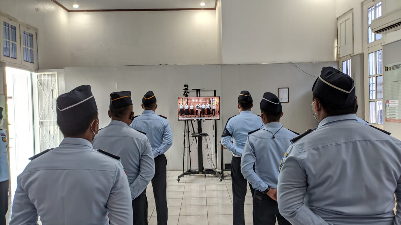 Lembaga Pemasyarakatan (Lapas) Pemuda Tangerang melakukan  Apel Pagi Virtual Kementerian Hukum dan Hak Asasi Manusia Republik Indonesia Tahun 2021 di Aula Lapas Pemuda Tangerang, kegiatan tersebut diikuti oleh Kepala Lapas Pemuda Tangerang Kadek Anton, Pejabat Struktural, dan seluruh Staf Administrasi.