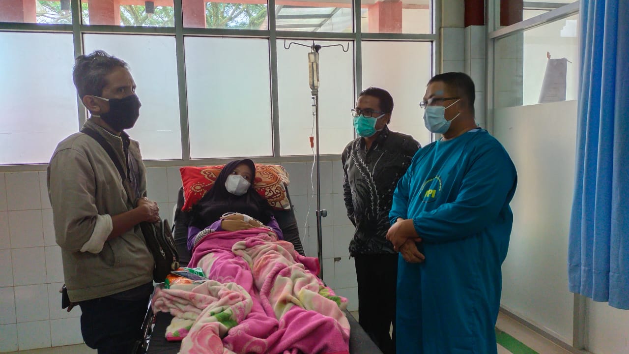 SIBERINDO.CO – Ketua Humas RSUD Berkah Pandeglang dr.Achmad Chubaesy Y, Sp.KFR, M.Kes menyempatkan menjenguk Puteri salah satu dari wartawan Pandeglang, yang tengah sakit di IGD RSUD Berkah Pandeglang, Kamis (10/6).