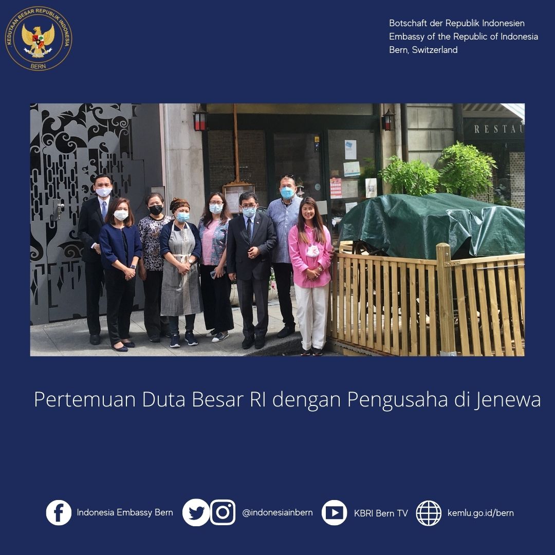 Duta Besar RI untuk Swiss dan Liechtenstien, Muliaman Hadad, menemui dan berdiskusi dengan para pengusaha rumah makan di Jenewa, Swiss, seperti Restoran Bali Palace Indonesia, Restoran Sendok Garpu, dan Restoran Bali Indonesia (08/06/2021).