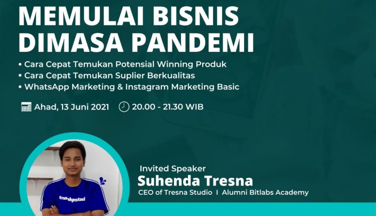Kamu pengen memulai bisnis jualan online tapi belum punya produk? Yuk belajar bareng di Live Webinar tresnastudio 13 Juni 2021 mulai pukul 08.00-21.30 dengan menghadirkan CEO Of Tresna Studio, Suhenda Tresna.