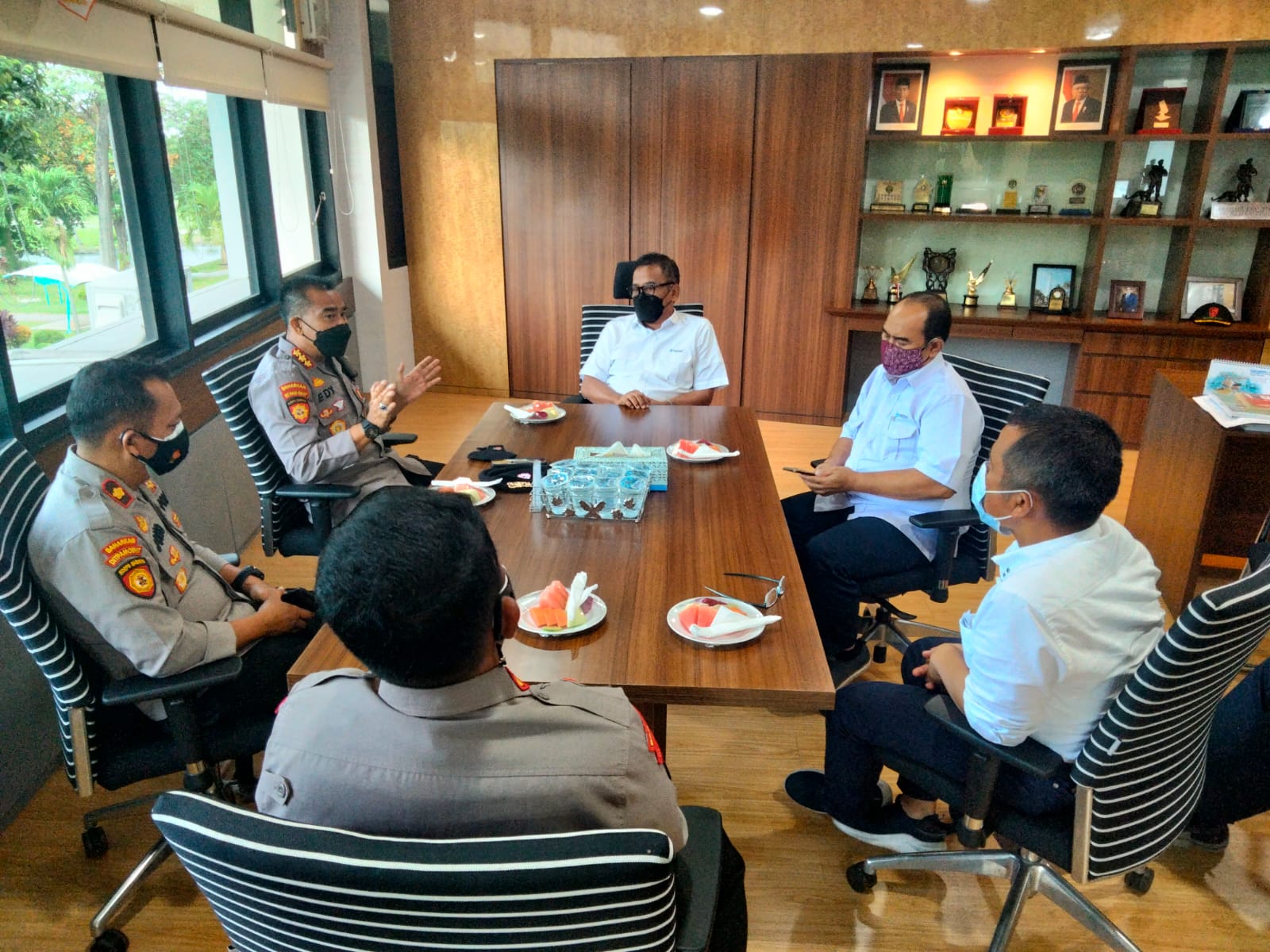 Edy Sumardi juga menambahkan, bahwa kedatangannya juga sekaligus untuk melakukan koordinasi terkait sistem managemen pengamanan terpadu pada PT. KSI dan dilanjutkan dengan mengecek penerapan bprotokol kesehatannya.