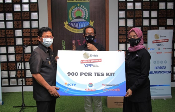 KOTA TANGERANG – Kota Tangerang kembali mendapatkan bantuan, kali ini datang dari Yayasan Pundi Amal Peduli Kasih (YPP) dan EMTEK Peduli Corona. Bantuan PCR test Kit tersebut diberikan secara simbolis dan diterima oleh Wakil Walikota Tangerang, H. Sachrudin di Gedung Pusat Pemerintahan Kota Tangerang, Kamis (10/09/2020).