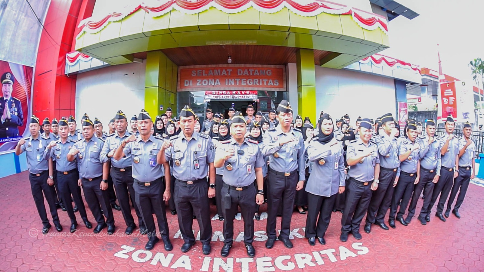 Ternate – Kepala Kantor Wilayah (Kakanwil) Kementerian Hukum dan Hak Asasi Manusia (Kemenkumham) Maluku Utara (Malut) Andi Taletting Langi memimpin seluruh jajaran Kanwil Kemenkumham Malut menggelorakan semangat pembangunan zona integritas menuju wilayah bebas dari korupsi (WBK) dan wilayah birokrasi bersih dan melayani (WBBM).