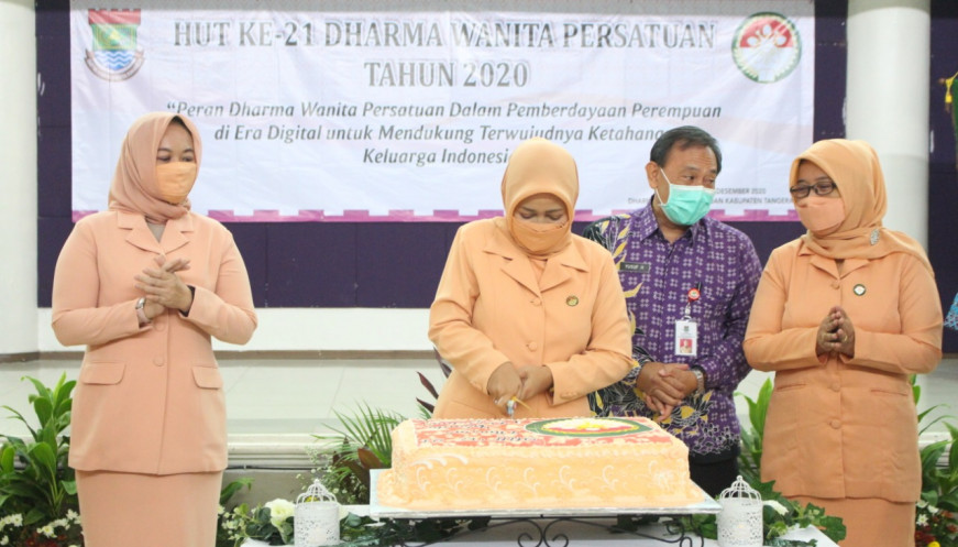 Tangerang – Dharma Wanita Persatuan (DWP) Kabupaten Tangerang menggelar hari ulang tahunnya yang ke-21 di Gedung Serba Guna (GSG) Kabupaten Tangerang, Kamis (10/12/20).