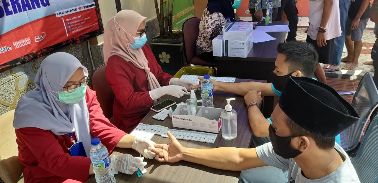 Bertempat di Halaman Pos Blok Rutan Kelas IIB Serang, para warga binaan mengikuti Rapid Test dengan menerapkan protokol kesehatan yang sudah ditetapkan.