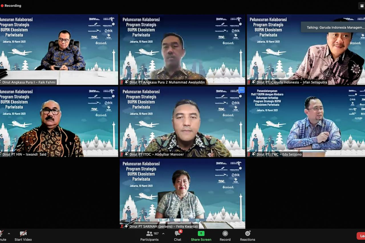 “Salah satu fungsi BUMN adalah sebagai agen pembangunan sehingga memiliki peran penting dalam program Pemulihan Ekonomi Nasional (PEN). Tujuh BUMN ini berkolaborasi untuk menjadi motor penggerak agar sektor pariwisata meningkat dan memberikan dampak positif bagi pelaku usaha lainnya, ”ujar Erick.