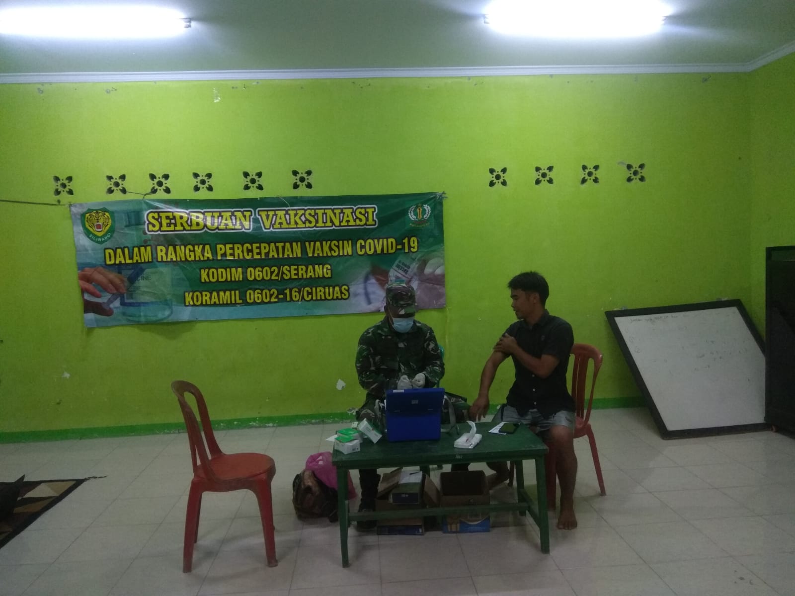Kegiatan Serbuan Vaksinasi yang masih dilaksanakan oleh Koramil 0602-16/Ciruas, adalah upaya TNI untuk membantu masyarakat agar lebih mudah mendapatkan vaksin.