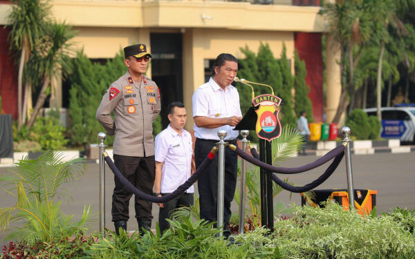 SIBERINDO.CO- Penjabat (Pj) Gubernur Banten Al Muktabar menjadi pemimpin upacara apel deklarasi Polisi RW di lapangan Markas Kepolisian Daerah (Mapolda) Banten, Rabu (10/5/2023). Gerakan polisi RW itu sendiri merupakan upaya pemerintah dalam menjaga Keamanan dan Ketertiban Masyarakat (Kamtibmas).