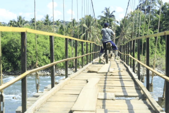 Jembatan gantung ini sudah lama dikeluhkan masyarakat. Lantaran tidak kunjung diperbaiki oleh pemerintah. Meskipun lantai jembatan banyak yang rusak, masyarakat masih meniti jembatan untuk ke kebun. Lebih mirisnya lagi, degan kondisi lantai jembatan yang rusak itu, tidak sedikit masyarakat mengunakan sepeda motor untuk mengangkut hasil panen kebun mereka.