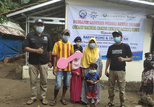 KABUPATEN SERANG – DPC FSB Garteks KSBSI Kabupaten Serang melalui programnya Garteks Peduli kembali melakukan kegiatan yang bersifat sosial kemasyarakatan, dengan program Garteks Peduli bedah rumah kali ini dilaksanakan di rumah bapak Romi dan ibu Sar’ah, salah satu warga Kampung Baluk Tegal RT 002/ RW 001, Desa Nambo Udik, Kecamatan Cikande, Kabupaten Serang provinsi Banten. “ Dikutip Bungasbanten.id – Group siberindo.co