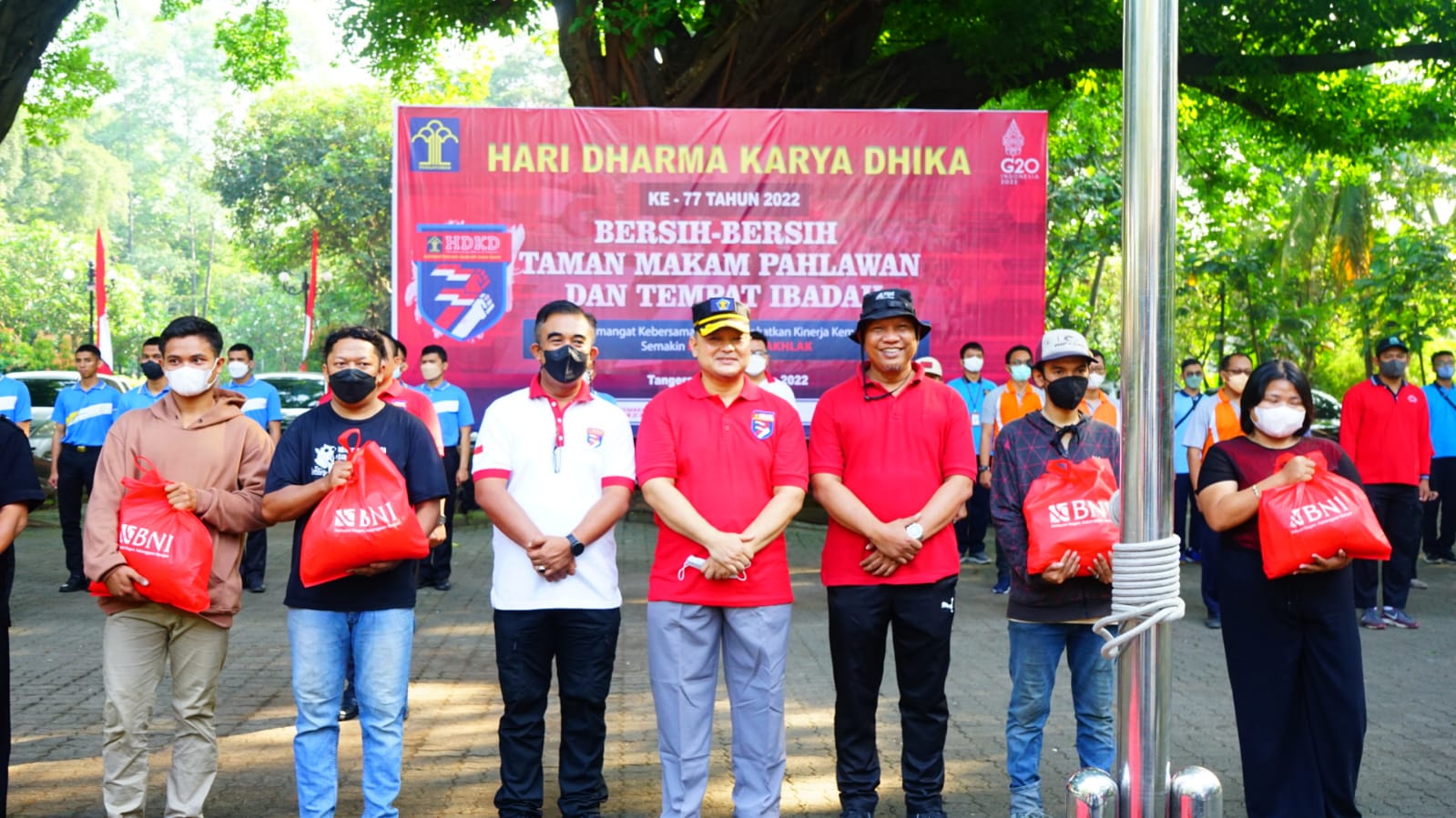 Ya, Peringati Hari Dharma Karya Dhika ke-77 Tahun 2022, Kementerian Hukum dan HAM menggelar Bersih-Bersih Taman Makam Pahlawan dan Tempat Ibadah bertempat di TMP Taruna, Kota Tangerang, dengan mengusung Tema “Dengan Semangat Kebersamaan, Kita Tingkatkan Kinerja Kemenkumham Semakin PASTI dan Berakhlak”.