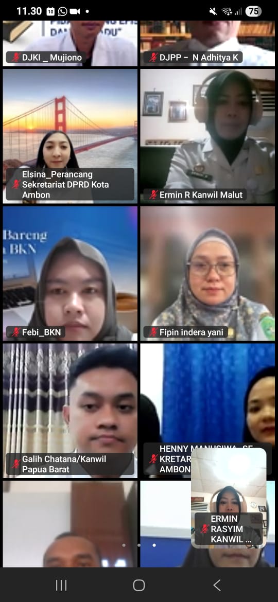 Ternate – Kantor Wilayah (Kanwil) Kementerian Hukum (Kemenkum) Maluku Utara (Malut) mengikuti Sosialisasi Surat Edaran Menteri Hukum Mengenai dan Simulasi Pemutakhiran Data Perancang Peraturan Perundang-undangan Wilayah Timur.