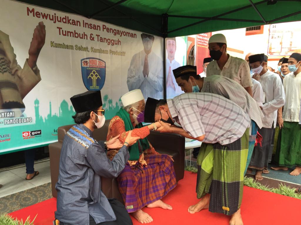Hadir dalam kegiatan tersebut, Ulama Besar skaligus Tokoh Agama Banten KH. Abuya Ahmad Muhtadi yang merupakan pimpinan Pondok Pesantren Rodatul Ulum Cidahu, Kabupaten Pandeglang, hadir Juga Kepala Kanwil Kemenkumham Banten Agus Toyib, Kepala Rutan Serang Aliandra Harahap, pejabat Struktural dan para petugas. Senin (11/10/2021).