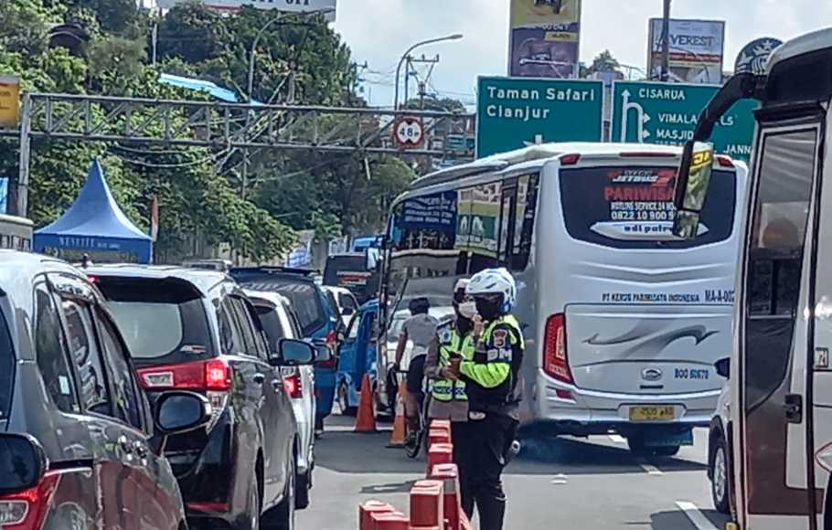 Sementara itu, di Simpang Gadog, petugas gabungan masih melakukan pemeriksan kendaraan sesuai kebijakan ganjil genap.