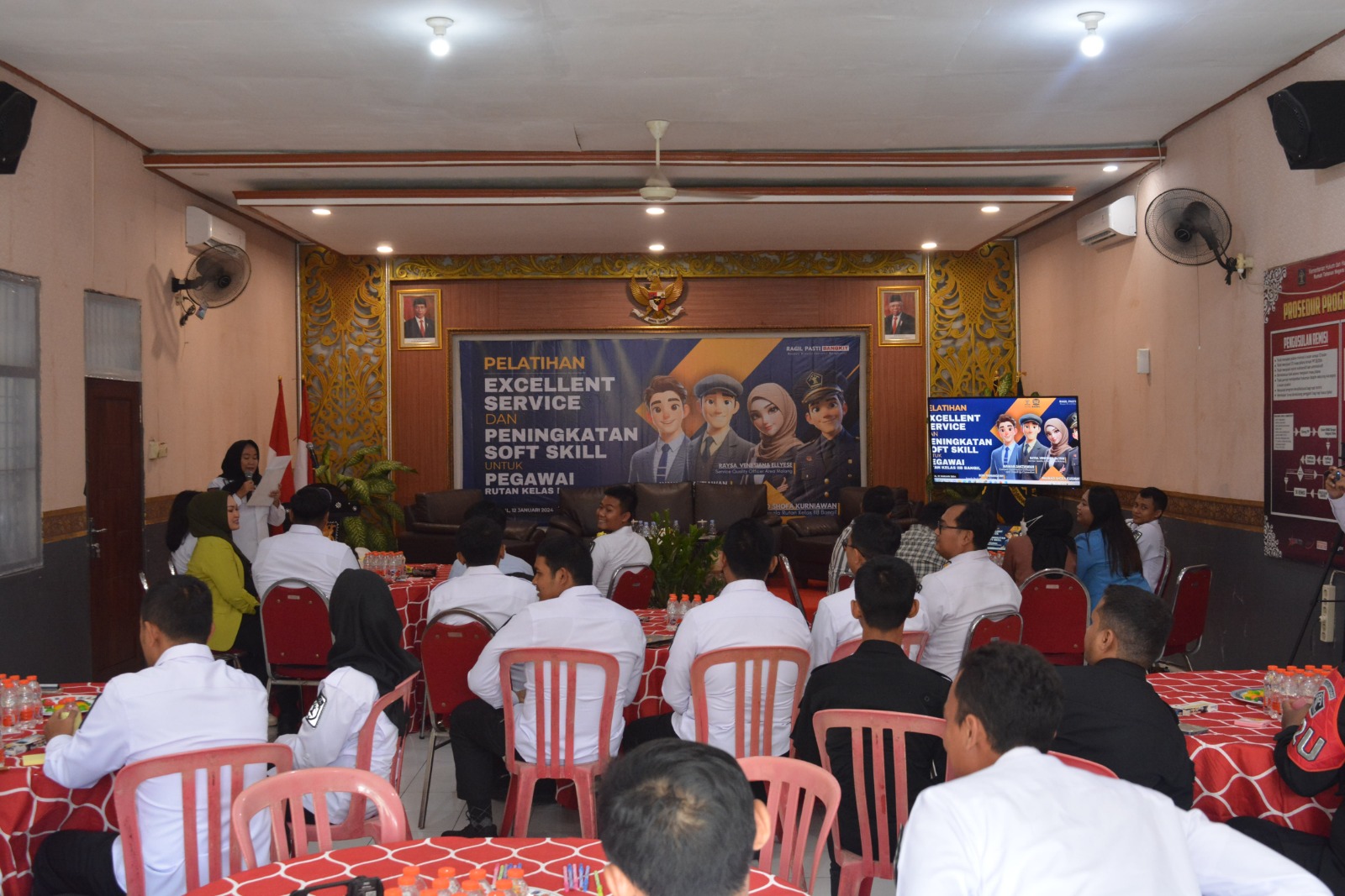 PASURUAN – Jum’at (12/01/2024) Rutan Bangil menggelar acara pelatihan Excellent Service dan peningkatan soft skill yang bertempat di aula rutan. Acara ini dihadiri oleh seluruh pegawai rutan dengan tujuan untuk meningkatkan kualitas pelayanan dan kemampuan interpersonal mereka. Narasumber utama pada acara ini adalah Raysa Venesiana Ellyese dari Bank Mandiri dan Wawan Saktiawan tokoh terkenal dari dunia stand-up comedy yang dipilih sebagai pembicara untuk memberikan pandangan unik dan menyegarkan terkait soft skill dan pelayanan.