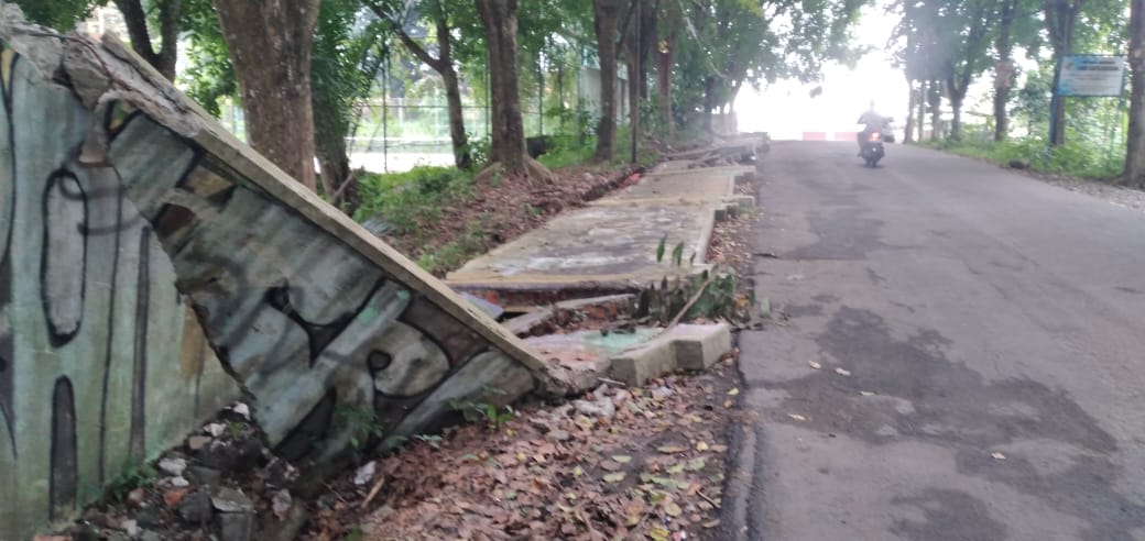 ” Lebih dari setahun kondisi pagarnya memang sudah miring, yang roboh sekarang panjangnya sekitar 50 meteran,” ujarnya.