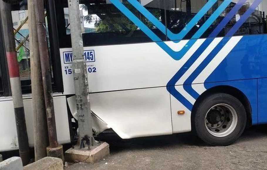 Kejadian Kedua Hari Ini, Transjakarta Tabrak Tiang Listrik di Puri Beta Ciledug