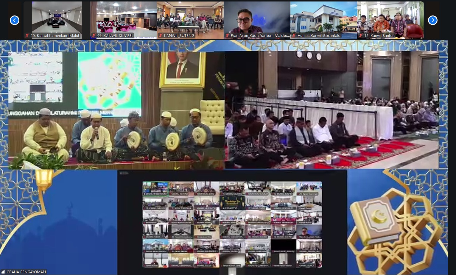 Ternate – Kantor Wilayah (Kanwil) Kementerian Hukum (Kemenkum) Maluku Utara (Malut) mengikuti kegiatan Munggahan dan Silaturahmi Pegawai Menyambut Bulan Suci Ramadhan Tahun 1447 H/2026 M yang diselenggarakan oleh Kementerian Hukum Republik Indonesia secara terpusat dan diikuti oleh seluruh Kantor Wilayah secara daring.