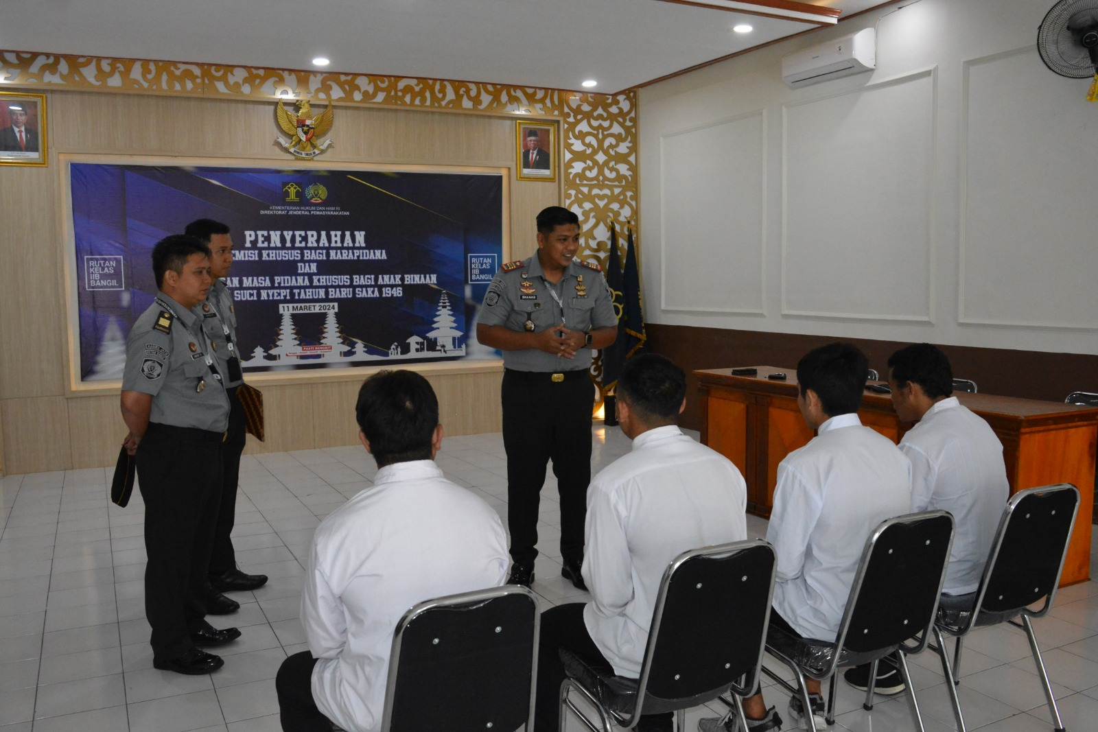 PASURUAN – Rutan Kelas IIB Bangil Kanwil Kemenkumham Jatim pada hari raya Nyepi yang sakral bagi umat Hindu, keempat warga binaan di Rutan Bangil merasakan keistimewaan yang luar biasa. Narapidana yang dalam keadaan terpenjara, diberikan remisi khusus untuk merayakan hari raya Nyepi. Hal ini tidak hanya menjadi momen penting bagi mereka untuk merayakan kepercayaan agama mereka, tetapi juga merupakan pengakuan atas hak-hak agama yang harus dihormati bahkan di balik jeruji besi, Kemarin (11/03/2024)