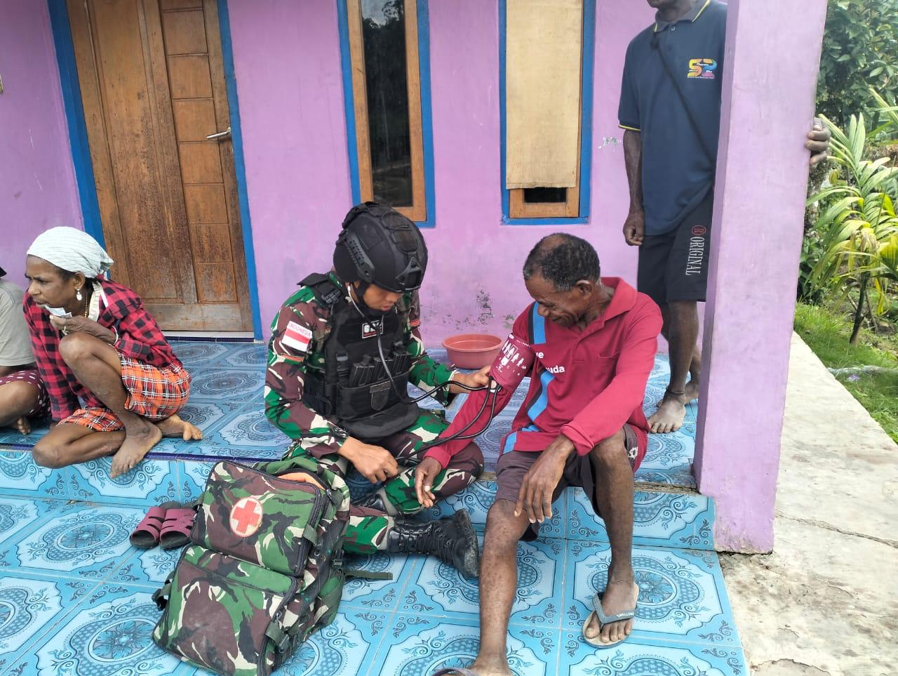 Pengabdian Tanpa Batas, Satgas Yonif 623 Berikan Pelayanan Kesehatan Kepada Warga