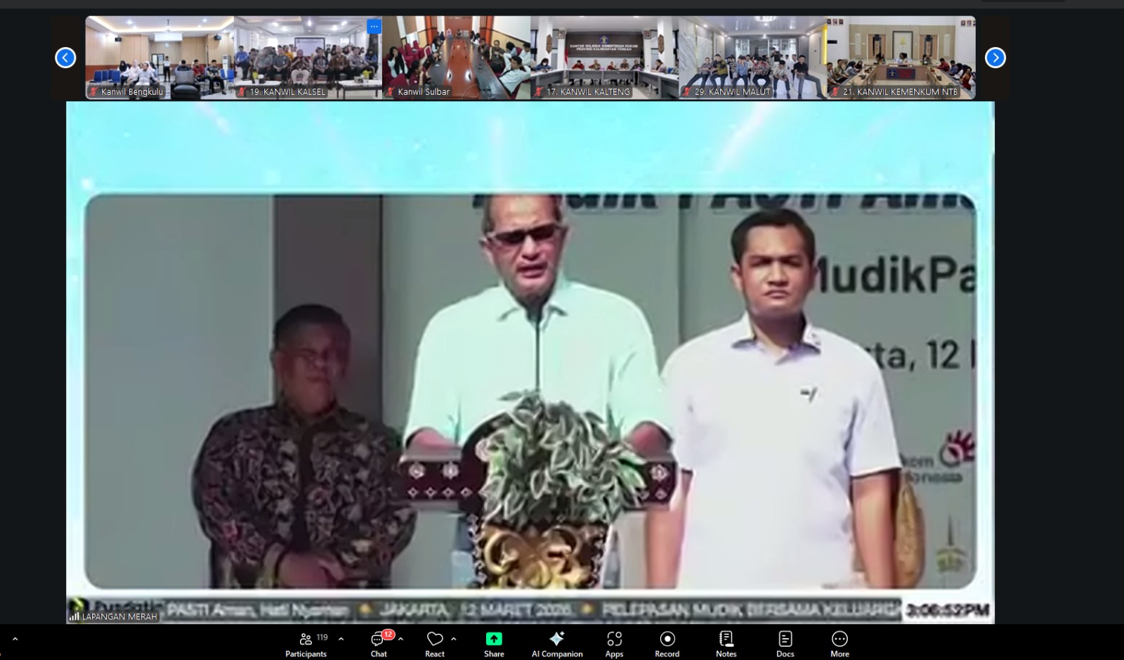 Ternate – Kantor Wilayah (Kanwil) Kementerian Hukum (Kemenkum) Maluku Utara (Malut), mengikuti Pelaksanaan Pelepasan Mudik Bersama Hari Raya Idul Fitri 1447 H / 2026 M, secara daring bertempat di ruangan gedung Kanwil baru Kamis, (12/4/2025).