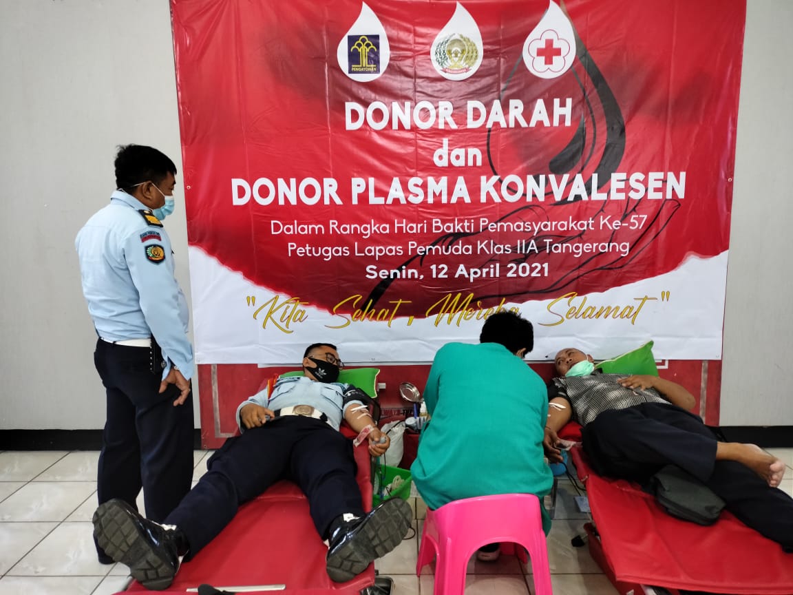 Dalam Rangka Hari Bhakti Pemasyarakatan ke-57  Tahun 2021, Lembaga Pemasyarakatan (Lapas) Pemuda Kelas IIA Tangerang Menggelar Kegiatan Donor Darah dan Donor Plasma Konvalesen . Senin (12/04/2021).